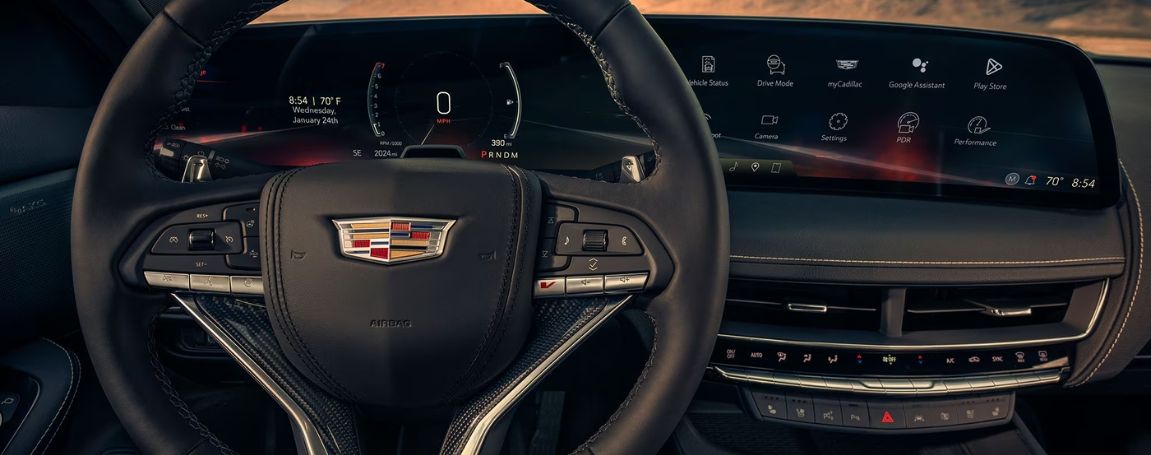 La Cadillac CT5 concentre le meilleure de la technologie avec une compatibilité Apple CarPlay et Android Auto sans fil. L’écran de 33 pouces dispose d’une ultra haute définition et vous donne accès à de nombreux services.